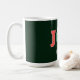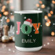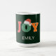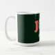 Für Weihnachten Freude und Glück! Kundenspezifische, farbenfrohe, festliche, typografische "JOY"-Weihnachtsmannmütze, grün, Tasse mit Ihrem Namen/Text. Mit dieser personalisierten Weihnachtsfeier ist jeder Schläfer beglückt! Diese Tasse mit kühnen JOY-Typografien mit einer Weihnachtsmannmütze und Ihrem individuelle Name ist ideal für gemütliche Morgenstunden, Feiertagsgeschenke oder Bürogeheimnis Santa. Der tiefgrüne Hintergrund und die farbenfrohen Buchstaben machen ihn fröhlich und hell! Passen Sie es mit jedem Namen an - perfekt für Kinder, Mitarbeiter oder Sie selbst.