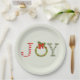 Joy - Weihnachtspapier Plate. Moderne Streifen mit weißen, roten und weißen und grünen Streifen mit Kranz und rotem Bogen.