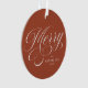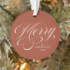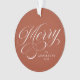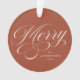 Élégant ornement de Noël avec "Joyeux" sur le devant dans un script de calligraphie blanc superposé avec un arrière - plan marron en terre cuite. Personnalisez le devant de l'ornement en ajoutant votre nom et l'année en lettres blanches. Le dos de l'ornement affiche votre photo.