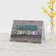 Cette carte "Joyeux Noël" est faite avec des matériaux réutilisés. Le lettrage pour "Joyeux" est unique comme il est fait avec fil maison.