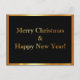 Carte de Noël avec un look de luxe en noir avec en faux or le texte : "Joyeux Noël & Bonne Année !" et un faux bord doré.