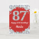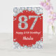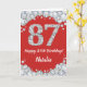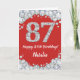 Joyeuse carte de Parties scintillant rouge et argent 87e anniversaire avec nom personnalisé. Pour plus de personnalisation, cliquez sur le bouton "Customiser" et utilisez notre outil de conception pour modifier ce modèle.