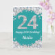 Joyeuse carte de Parties scintillant Turquoise Turquoise Aqua et Silver 24e anniversaire avec nom personnalisé. Pour plus de personnalisation, cliquez sur le bouton "Customiser" et utilisez notre outil de conception pour modifier ce modèle.