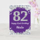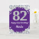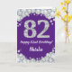 Joyeuse 82e Anniversaire Carte de Parties scintillant violet et argent avec nom personnalisé. Pour plus de personnalisation, cliquez sur le bouton "Customiser" et utilisez notre outil de conception pour modifier ce modèle.