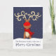le renne à nez rouge. Carte de saison de Noël de Noël de style unique. Customisez avec votre nom de famille. Carte conçue et illustrée par Sarah Trett.