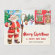 Ce thème du Père Noël Joyeuse carte postale de Noël avec le Père Noël à l'arbre de Noël et quelques maisons décorées avec bonhomme de neige entre eux. La carte a aussi des mots "Joyeux Noël & Bonne Année" sur le devant - ces textes sont changeables. Vous pouvez écrire votre note personnalisée au verso ou supprimer le texte et écrire votre texte à la main après l'impression. Tous les textes sont modifiables - utilisez le menu "personnaliser ce modèle".