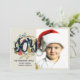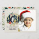 Carte photo de vacances de Noël avec une belle florale de vacances, feuilles, poires et baies de conception couronne avec texte décoratif qui lit JOIE! Ce carte photo est facile à customiser avec votre photo, nom de famille, prénom, et l'année en cours. Cette belle carte de Noël Joyful Joy est parfaite pour envoyer à des amis et à la famille. Le dos est gris pâle avec les mêmes sprigs à feuillage persistant décoratifs, fleurs, poires, baies et feuilles que l'avant, avec un espace pour ajouter la date de l'année en cours !
