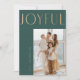 Carte photo de vacances moderne et minimal avec une grande photo sur un arrière - plan vert foncé. Faux lettrage or lit Joyful dans une police moderne. Le dos de la carte comporte un deuxième accueil personnel et une photo avec vos noms.