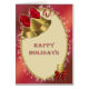 Une belle carte de Noël non religieuse. Cloches dorées avec rubans rouges. Envoyez vos voeux de vacances avec cette carte traditionnelle élégante.