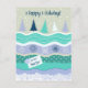 Cette carte de vacances pour Enseignant a été conçue dans un schéma de couleurs alternatif. Elle présente des éléments de couleur bleu marine, aqua et lavande, y compris du papier déchiré, des sapins et des flocons de neige. Cette conception s'inspire de l'artisanat du scrapbooking. Pour ajouter du texte au côté opposé (assurez-vous que ce côté est affiché), cliquez sur "Personnaliser" puis sur "Ajouter du texte". Choisissez une police ('f' dans un cercle), une taille de police et une couleur.