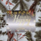 Elegant personalized real foil holiday card. The design features festive Christmas lights, snowflakes and sparkles on black to gray gradient background. Le text est fully customizable.