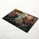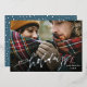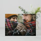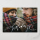 Elégant carte photo de vacances avec "Happy Holidays" dans un script en feuille d'argent écrit à la main avec votre nom et votre année en lettres blanches. La carte de vacances en feuille d'argent s'inverse pour afficher un motif de neige blanc avec un arrière - plan bleu hiver.