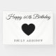 Célébrez un événement marquant dans un style intemporel avec cette bannière d'anniversaire 60 ans blanche qui comprend un espace pour un texte personnalisé. Le design épuré et élégant complète n'importe quel thème de fête, du classique au moderne. Parfait pour les rassemblements à domicile, les lieux de réception ou les arrière-plans photo, il ajoute une touche personnelle tout en gardant la célébration lumineuse, festive et mémorable pour l'invité d'honneur.