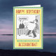 Le comptable est surpris de voir un client arriver avec une énorme tirelire. Carte idéale pour tout comptable agréé ou toute personne travaillant en comptabilité et finance.