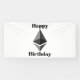 Cette bannière comporte les mots "Joyeux Anniversaire" dans une police en gras avec des lettres noires et un contour gris affichant une icône Ethereum au centre dans ce thème et style d'anniversaire de crypto-monnaie. Cette bannière a une impression simple face avant, des mesures de sécurité extérieures 4"x8" réalisées avec une finition mate élégante et est à la fois résistante aux décolorations et aux déchirures pour une utilisation en intérieur ou en extérieur, idéale pour annoncer n'importe quoi, des anniversaires aux remises de diplômes, des mariages aux anniversaires de mariage. Bords ourlés et soudés thermiquement pour une finition soignée. Les bannières extérieures peuvent être achetées avec des œillets métalliques.
