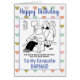 Caricature Barmaid. Le mari se met à l'air libre une fois le pub ouvert. Personnalisez avec votre choix de texte et de message intérieur.