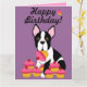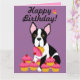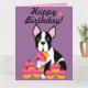 Chien doux ! Le chiot lunatique de Boston Terrier avec la carte d'anniversaire personnalisable de petits gâteaux roses la salutation intérieure peut être changé ou personnalisé par vous ! Cliquez sur la personnaliser il bouton pour commencer !
