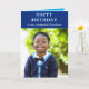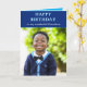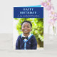 Joyeux anniversaire de grand-mère message carte photo. Joyeux anniversaire tapé sur le devant. Bleu et blanc thème pour l'écriture et l'arrière - plan. Turquoise vif à l'intérieur. Convient pour une photo de portrait. À droite. Tapez votre message à l'intérieur. Voulez-vous mettre une photo sur la carte - une photo du petit-fils d'anniversaire ou une photo de vous la grand-mère (ou grand-père) avec votre petit-fils? Mettez votre photo sur la carte d'anniversaire. Customisez et personnalisez comme vous le souhaitez. Carte d'anniversaire de grand-mère ou grand-père, grand-mère ou grand-père, grand-père