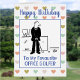 Carte d'anniversaire du golfeur de bureau. Golfer pratique son golf sur le tapis de bureau. Personnalisez avec vos propres détails et message. Idéale carte d'anniversaire drôle pour un Golfeur.