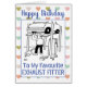 Exhaust Fitter travaille à la réparation d'une voiture. Réparation de voitures. Dessin sur le thème de l'automobile d'un appareil d'échappement dans un atelier de réparation de véhicule. Personnalisez avec vos propres détails et message. Carte d'anniversaire pour un poseur d'échappement.