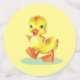 Joyeux canard avec de l'or comme des confettis sur la table jaune Party confetti. Texte prêt à être personnalisé.