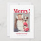 Un simple carte photo de vacances qui transmet l'esprit joyeux de la saison de Noël, cette carte a un modèle photo pour inclure votre photo de vacances désirée. Le simple texte en gras indique "Joyeux !" en rouge vif au-dessus de la photo avec des salutations supplémentaires ci-dessous avec votre nom de famille.