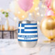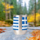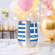 Célébrez le Jour de l'Indépendance de la Grèce avec ce magnifique tourbillon en acier inoxydable du 25 mars, qui présente les couleurs bleu et blanc emblématiques du drapeau grec et les salutations festives dans une police d'inspiration grecque. Yamas ! Reverse affiche un design identique. Design © W.H. Sim. Voir plus sur zazzle.com/expressionsoccasions