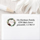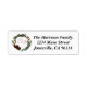 Fleurs blanches peintes à la main, branches de baies rouges, souffle de bébé, boucs de pin et cônes de pin avec serif rouge et script Merry & Bright étiquettes d'adresse de retour.