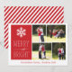 Joyeux et brillant Flocon de neige Noël Photo Collage Carte de vacances Personnalisée Joyeux et Lumineux Carte de Noël. La carte comporte un collage de quatre images et une typographie "Merry and Bright" et un rouge rayé en arrière. Personnalisez avec vos noms et vos photos préférées. Objets correspondants disponibles dans les documents Imprimables dignes de mention