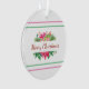 Cet ornement festif a un arrière - plan blanc avec des garnitures de couleurs. Au centre, il y a des cadeaux enveloppés de rouge et de vert, avec des sprigs de saint et à feuillage persistant. En haut et en bas de l'ornement il y a des rayures d'accent rose et vert. Le texte "Joyeux Noël" peut être remplacé par un nom, une occasion spéciale ou même une date. Le dos de l'ornement a une version plus grande du cadeau et motif à feuillage persistant et vous pouvez ajouter votre propre message.