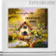 Aimant représentant une peinture d'un paysage avec maison d'oiseaux et chantant le petit oiseau avec grand-mère oiseau. Un bel aimant artistique pour la fête des mères ou son anniversaire.