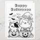 Bonne page de coloriage Halloween pour les enfants. Cute chats d'Halloween, chauves-souris et citrouilles.