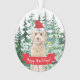 Cocapo de champagne mignoné Dog ornement de Noël mis sur un arrière - plan de pin & épinette avec le message de vacances "Happy Howlidays". Visitez notre boutique pour voir un large assortiment de pains pour chiens