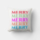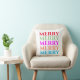 Cet oreiller de fête joyeux présente les mots "MERRY MERRY MERRY MERRY MERRY" en lettres colorées sur le devant et le dos. Ce coussin est si coloré et apportera une énergie positive à votre espace de vacances. Copyright Kathy Henis