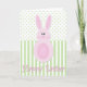 Cette carte comporte un mignon petit lapin qui fait aussi partie de l'oeuf de Pâques ! Un design amusant sur un pois de polka vert et arrière - plan rayé. Le texte du bouquet ci-dessous dit "Bonne Pâques." Consultez la section Vacances & Événements de notre galerie pour plus de produits "Bonnet d'Oeufs de Pâques", y compris les autocollants assortis, la poste et d'autres cadeaux.
