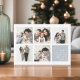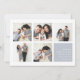 La carte de collage photo moderne de Noël comprend cinq photos carrés disposées dans une grille, avec votre message de vacances personnel et les noms en blanc sur gris en bas à droite. Un design simple et minimaliste qui montre vos photos préférées. Les cartes sont retournées à un motif de flocon noir et blanc.