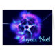 Ein lila und blaues Fraktal-Bild eines Fünf-Punkte-Sterns in einem umgebenden Farbschwirl, alles auf dunklem Hintergrund. Französischer Text, "Joyeux Noё l" erscheint in leuchtend blau und weiß.