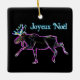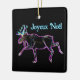 Eine helle, neonähnliche Darstellung eines Bullenmoose auf schwarzem Hintergrund. Französischer Text, "Joyeux Noё l" erscheint in leuchtend blau und weiß.
