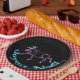 Eine helle, neonähnliche Darstellung eines Bullenmoose auf schwarzem Hintergrund. Französischer Text, "Joyeux Noё l" erscheint in leuchtend blau und weiß.
