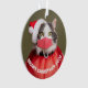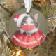 Un adorable kitty blanc et gris vêtu d'une tenue Père Noël avec masque coronavirus assorti.
