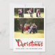 Collage photo de Noël le plus joli avec 4 cartes photos. Le texte "Joyeux Noël" dans un script typographie de style lettré en rouge et noir, baies sainte et quatre photos ornent cette carte plate contemporaine. Un motif rayé rouge et vert couvre le dos. Photographie © Storytree Studios, Stanford, CA