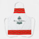 Ce tablier de vacances commence par un arrière - plan blanc. En haut et en bas, il y a une épaisse planche rouge, avec une vague de parties scintillant couleur or. Au centre il y a un arbre à feuillage persistant et les mots "Joyeux Noël". Le texte peut être customisé.