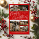 Red Merry Christmas Calligraphy Photo Carte magnétique présente un script de calligraphie moderne sur le devant, avec cinq photos, et un plaid de Noël festif sur le dos.