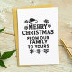 Un arrière - plan blanc. Texte sur le devant : Joyeux Noël de notre famille à votre. Votre photo, texte et noms au dos. Texte noir.