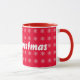 Joyeux Noël Blanc Snowflakes arrière - plan rouge sur une tasse.