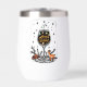 Un décor de Noël festif et gai présente un verre de vin qui déborde de vin, entouré d'étoiles colorées. À la base du verre se trouvent des branches de fougères, des pinecones et un cerf. Le texte écrit à la main dit : "Joyeux Noël." Ce design est disponible sur une large gamme de produits.