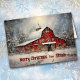 Une grande grange rouge trône majestueusement sur une nuit d'hiver brillante devant cette carte de Noël. Un sentier enneigé mène à une porte à grange ouverte. Le texte en rouge foncé en bas dit actuellement "Joyeux Noël de l'Illinois", mais peut être changé à tout ce que vous voulez, tout comme le texte à l'intérieur.