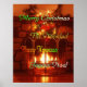 Joyeux Noël en 4 langues, avec une cheminée dans l'arrière - plan, et décorations de Noël.