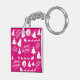 Joyeux Noël Hot Pink Design avec Père Noël et son renne, les arbres de Noël, et les mots de "Joyeux Noël" et "Bonnes Fêtes".