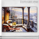 Joyeux aimant rectangle de Noël avec tableau d'un balcon italien merveilleuse d'hiver avec lanternes, arbre et robin
